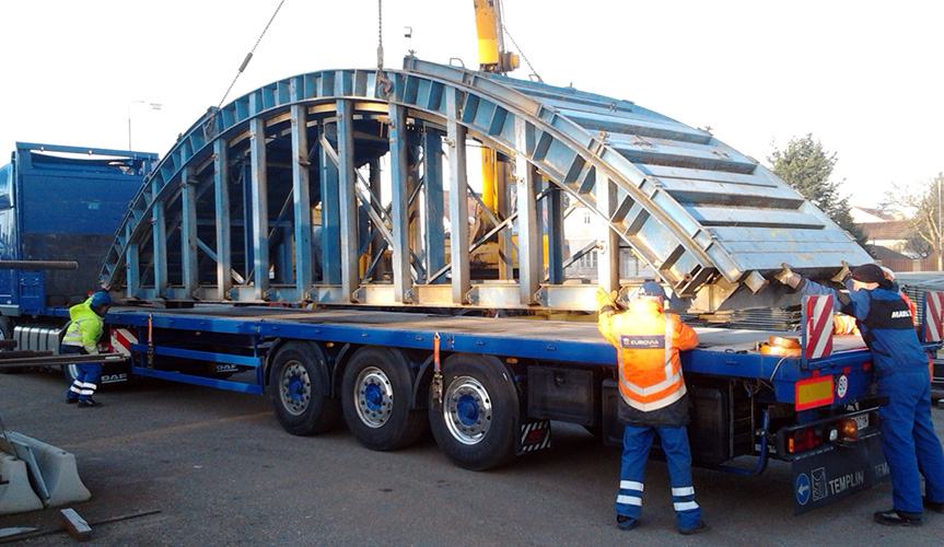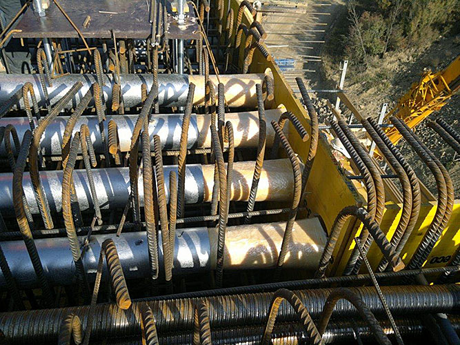 Ocelové průchodky pro dálniční most Jánovce, Slovensko (2013-14) a uložení na pilíř